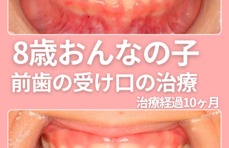 8歳女の子の受け口治療|低位舌が原因?マウスピースで10ヶ月改善した症例を相…