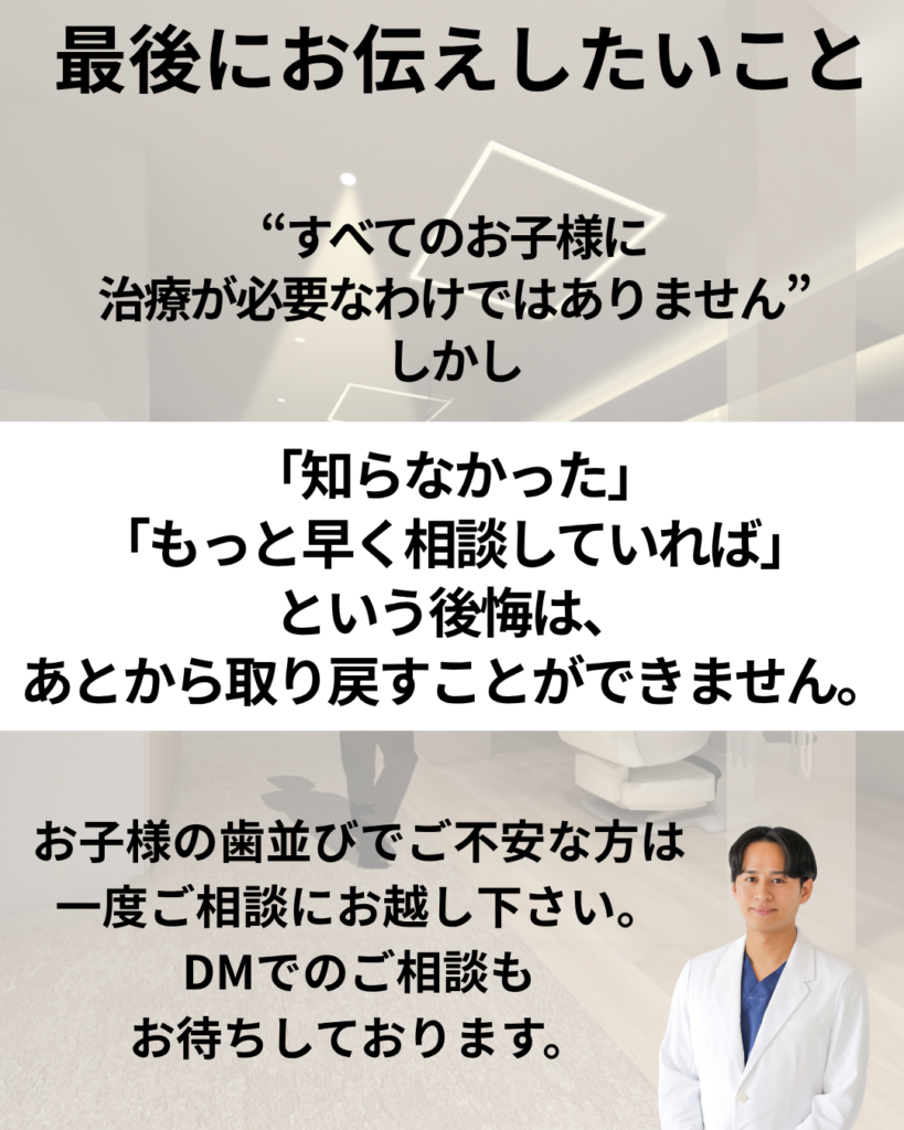 すべてのお子さんに治療が必要なわけではありません。ただ、「知らなかった」という後悔はあとから取り戻せません。