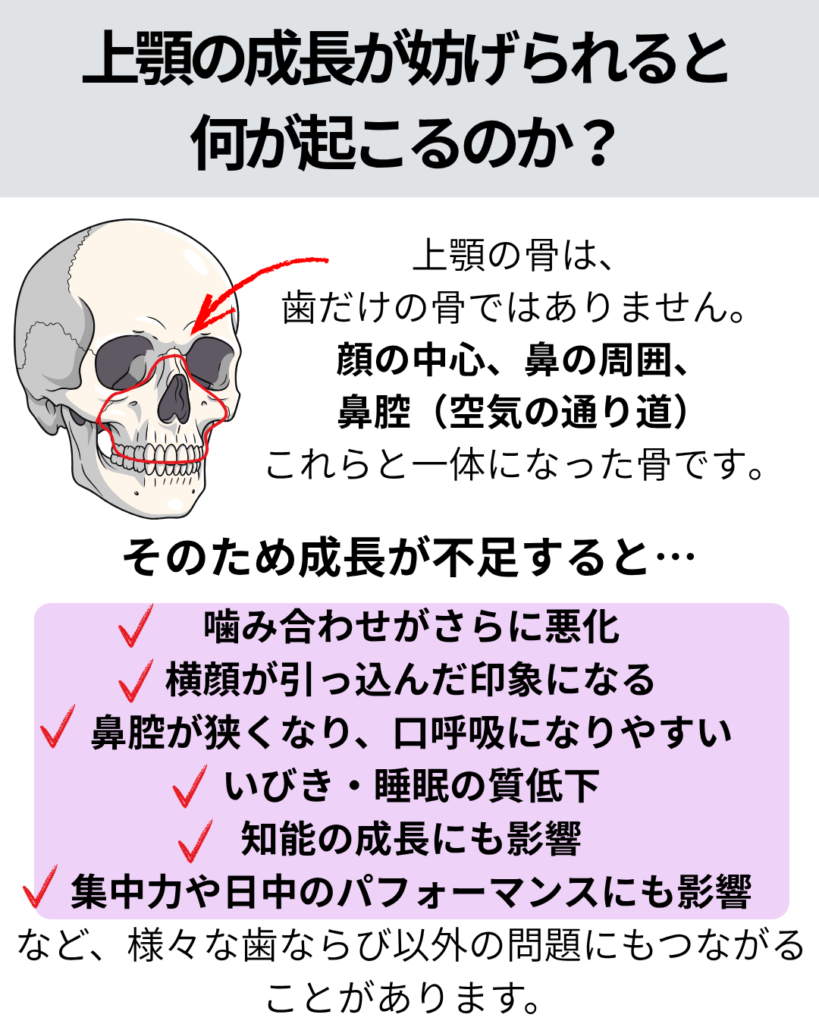 - 上顎の成長が妨げられると起こること(全身への影響)