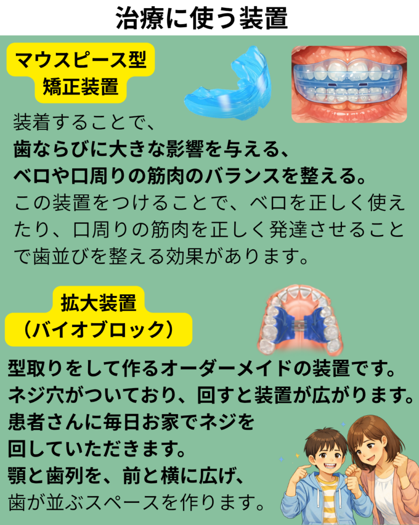 • 使用した装置(マウスピース型・バイオブロック)の特徴