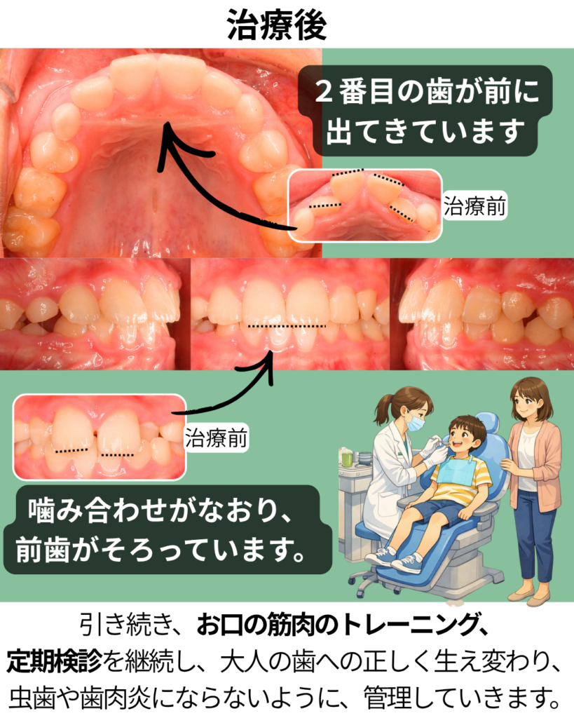 治療後の変化|2番目の歯が前に出て、噛み合わせが改善