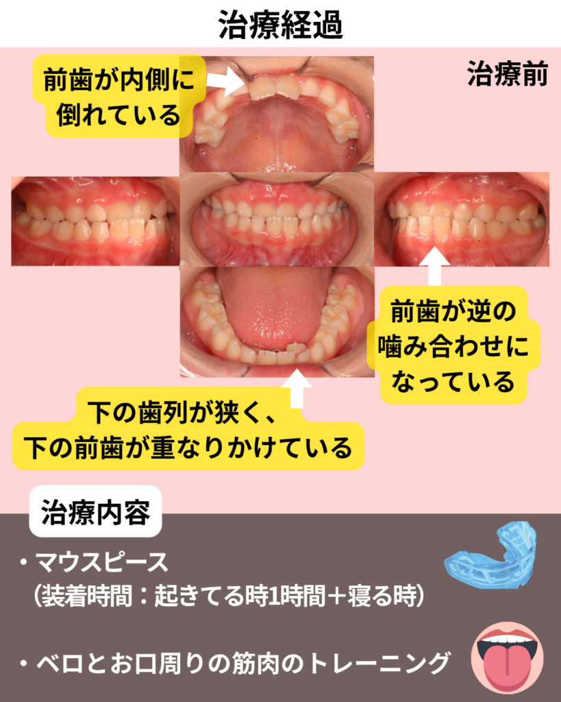 • 治療前の診断内容(受け口・低位舌・下あごの狭さ)