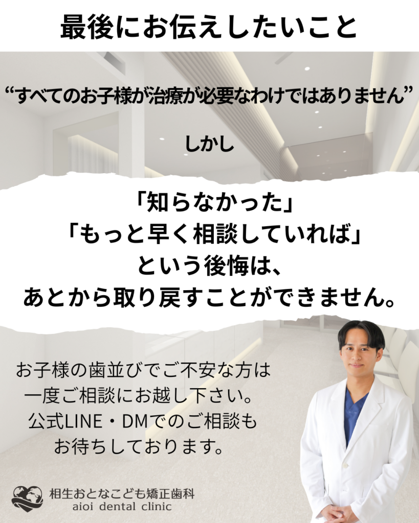 すべてのお子さんに治療が必要なわけではありません。ただ、「知らなかった」という後悔はあとから取り戻せません。