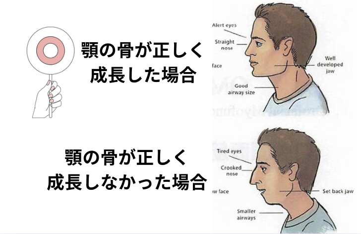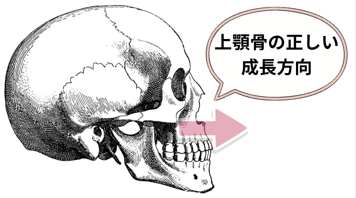 矢印のように成長することで、永久歯が結麗に並ぶスペースができたり、鼻腔を広げ正しい呼吸や睡眠がしやすくなったり