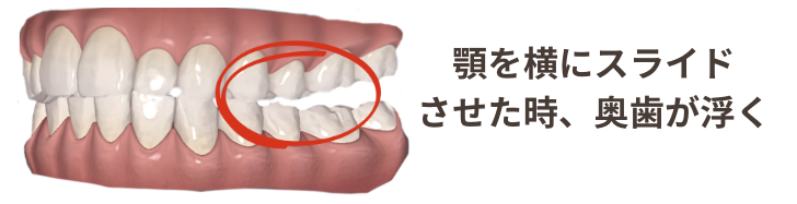 顎を横にスライドさせた時、奥歯が浮く