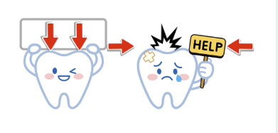 歯は、縦方向の力には強いですが横方向の力に弱いです。