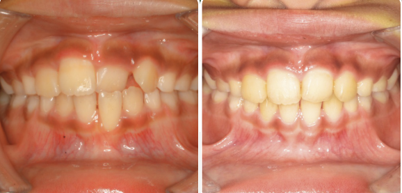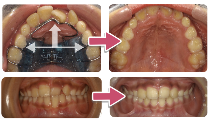 バイオブロックという装置を使い、顎を広げつつ前歯の噛み合わせをなおしました。