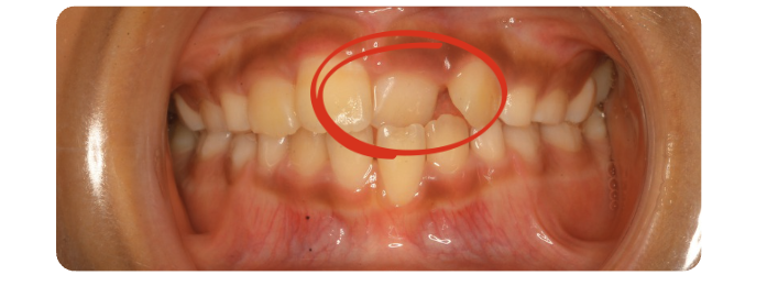 前歯が一部上下反対の噛み合わせになっています。このまま放置しておくと・・・く上顎の正常な成長を妨げる