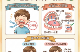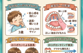 | 前歯が反対咬合・引っかかりあり | 成長が妨げられる | 歯列不正の悪化・顔立ちへの影響 |